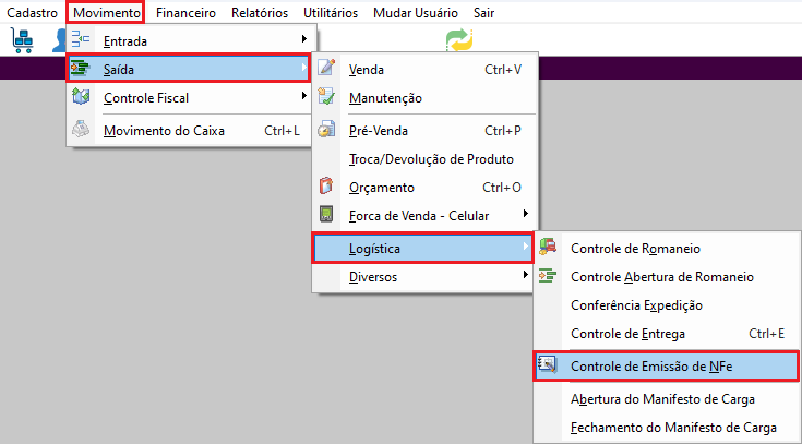 📄 A NFe/NFCe será gerada em seguida vá para o "Controle de Nota Fiscal Eletrônica" para a Transmissão. Você poderá acompanhar o status e imprimir a DANFE.