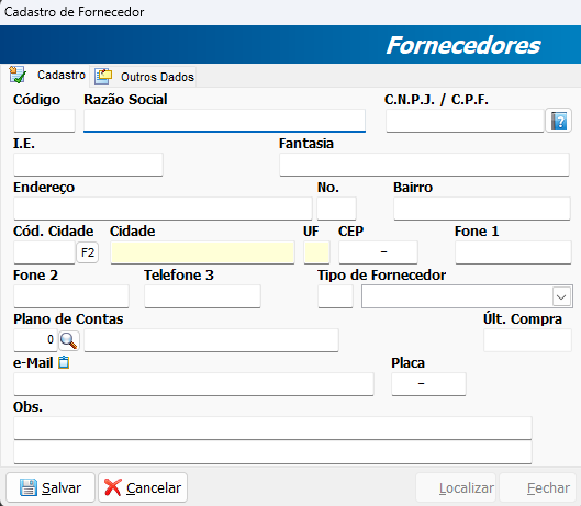 📁 Plano de Contas: Classificação contábil do fornecedor.
